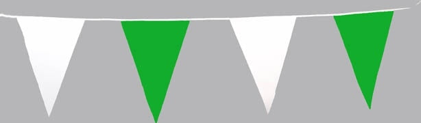 Farbe: grün/weiß -10-m-Wimpelkette grün/weiß —Material: PE -Warnhinweis: Dekorationsartikel, kein Kinderspielzeug
