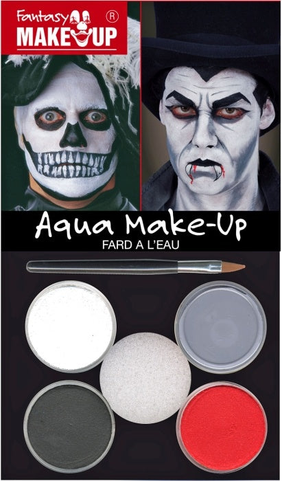 Farbe: schwarz/weiß/grau/rot -Schminke —Material: Talc, Glycerin, Kaolin, Aqua, VP/VA Copolymer, Sodium Cetearyl Sulphate, Octyldodecanol, Isopropyl Palmitate (and) Trilaureth-4-Phosphate, MICA, Phenoxyethanol, Methyl Paraben, Ethyl Paraben, Propyl Paraben, [+/- CI 77891, CI 19140:1, CI 15850, CI 74160, CI 77499, CI 77400, CI 77491, CI 77000, CI 77163] -Warnhinweis: Achtung! Nicht für Kinder unter 3 Jahren geeignet. Erstickungsgefahr durch verschluckbare Kleinteile. Bewahren Sie diese Information auf!