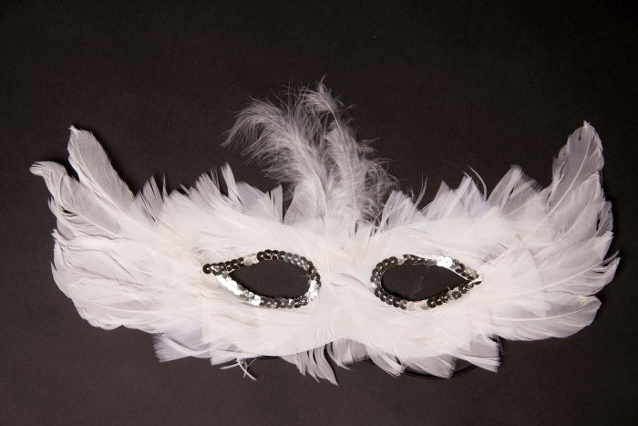 Farbe: weiß -Augenmaske aus Federn, weiß —Material: PVC, Gänse-, Truthahn-, Hühnerfedern -Warnhinweis: Karnevalsartikel, kein Kinderspielzeug! Naturprodukt. Achtung! Vom Feuer fernhalten!