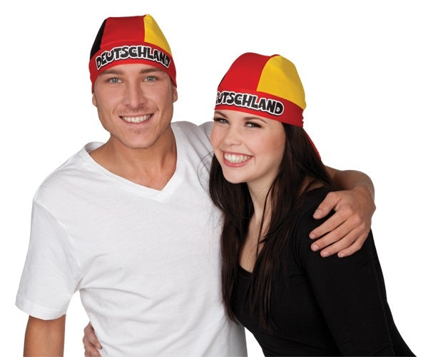 Das Bandana wird in schwarz/rot/gelb geliefert. Vorne auf dem Bandana ist ‚DEUTSCHLAND‘ in dicker Comicschrift aufgedruckt.