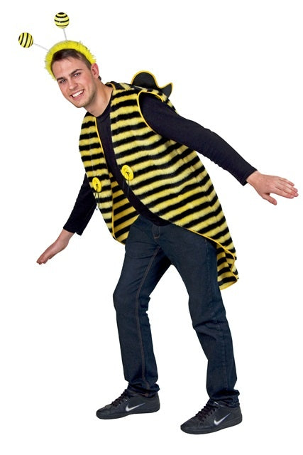 Ärmelloser Plüschfrack mit angenähten Flügeln und Zierknöpfen, Kopfbügel mit Fühlern. -Größe: L -Farbe: schwarz/gelb -Frack —Material: 76% PC, 19% PES, 5% PP –