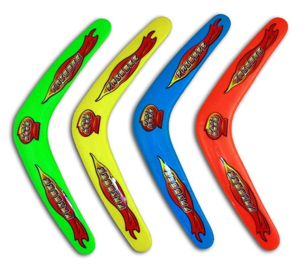 Der Bumerang wird sortiert in orange, grün, blau und gelb geliefert (wir versuchen immer gleichmäßig zu sortieren, es kann aber auch mal zu Abweichungen kommen, selten fehlt auch mal eine Ausführung komplett). Der Bumerang besteht aus Kunststoff und wird einzeln verpackt geliefert.Der Preis versteht sich für 1 Bumerang.