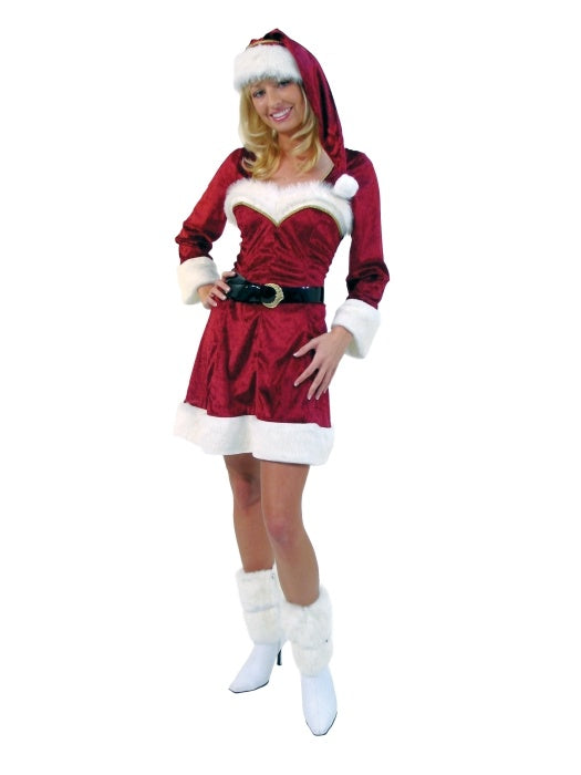 elegantes Weihnachtskleid mit Mütze und Gürtel Größe: 36/38