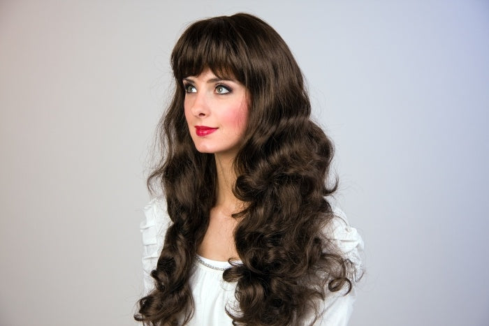 Farbe: braun -Emilia: Langhaarperücke mit Pony, braun —Material: 96% MA, 4% PES –