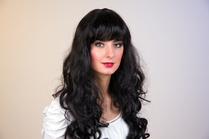 Farbe: schwarz -Emilia: Langhaarperücke mit Pony, schwarz —Material: 96% MA, 4% PES –