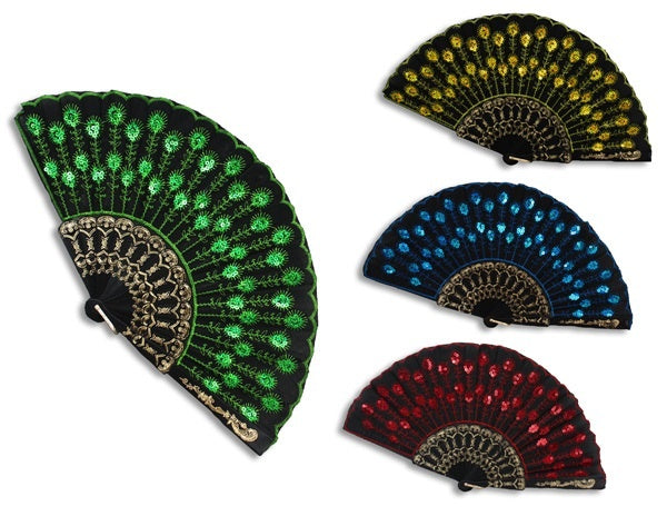 – schwarzer Fächer mit bunter Stickerei und Pailetten