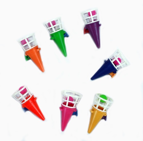 Die Fangbecher werden je einzeln verpackt im Polybeutel geliefert. Die Farben sind mehrfach sortiert.