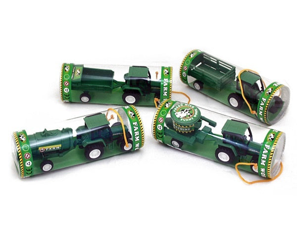 × Farm Traktor mit Anhänger 4 fach sortiert in Dose ca 17x6cm