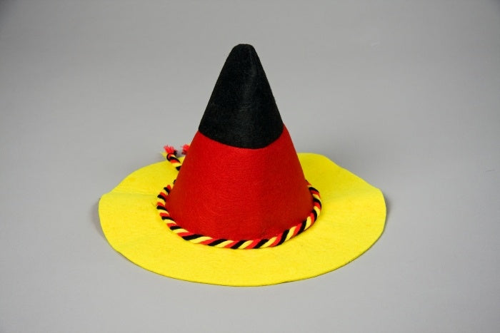 -Größe: ca. 58 -Farbe: schwarz/rot/gelb -Filzhut in Deutschlandfarben mit Kordel —Material: 100% PES –
