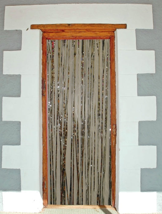 Farbe: silber -Folien-Türvorhang, ca. 2 x 1 m, silber —Material: PVC -Warnhinweis: Dekorationsmaterial. Dies ist kein Spielzeug. Nicht in die Nähe von Feuer bringen.