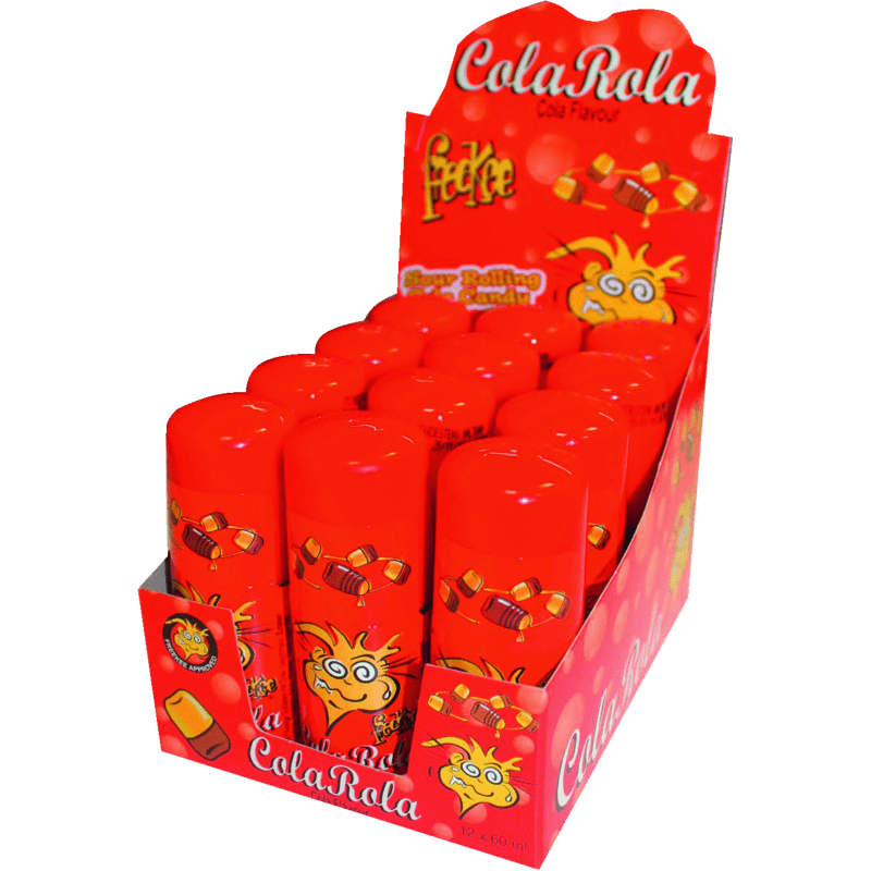 freekee Cola Rola bietet Colageschmack wann immer sie wollen. Einfach den Deckek abzeihen und schon kann es losgehen. Einfach das Candy mit dem Roller auf der Zunge verteilen und geniessen. Neider garantiert.