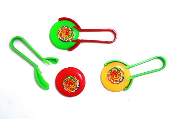 Die Frisbees werden mehrfach farblich sortiert geliefert (Sortierung nicht gleichmäßig) Die ca 5 cm großen Frisbees werden in den Abschießer gesteckt. Drückt man nun den Abschießer zusammen fliegt die Frisbeescheibe weg. Schöner Giveawayartikel. Der Preis bezieht sich auch 1 Stück.