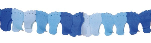 Die Papier-Girlande besteht aus Füßchenpaaren in blautönen. Sie misst 6 m lang.