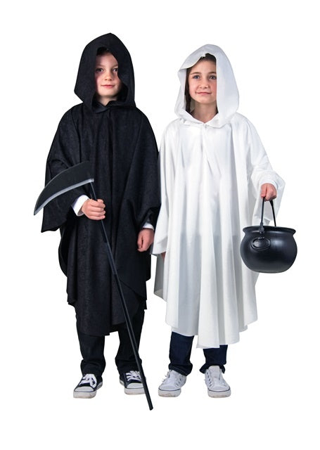 ein universell einsetzbarer Umhang als Geist, Vampir, Tod. -Größe: 128/140 -Farbe: weiß -Kapuzen-Umhang, weiß —Material: 100% PES –