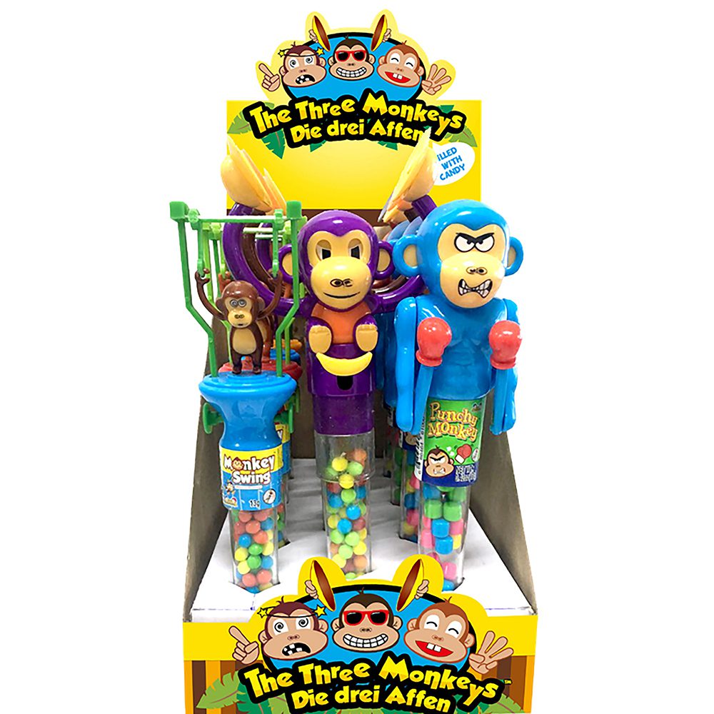 Die drei Affen sorgen immer für Spaß. Ob der Crazy Monkey mit seinen Schellen oder der Punchy Monkey mit seinen Fäusten. Hier ist Abwechslung garantiert. Das Trio wird Monkey Swing vervollständigt. Denn alle drei Affen haben unten einen kleinen Vorrat an Dextrose. Aber obenrum wird geschaukelt, beboxt oder laut Musik gemacht. Ein garantierter Hingucker für für Kinder.