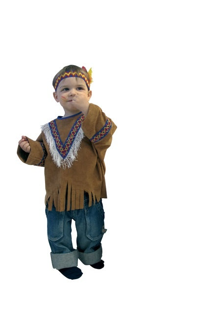 Oberteil und Stirnband (mit Feder) -Größe: 92 -Farbe: braun -Oberteil —Material: 100% PES, Stirnband —Material: 100 % PC – Enthält nicht-textile Bestandteile tierischen Ursprungs –