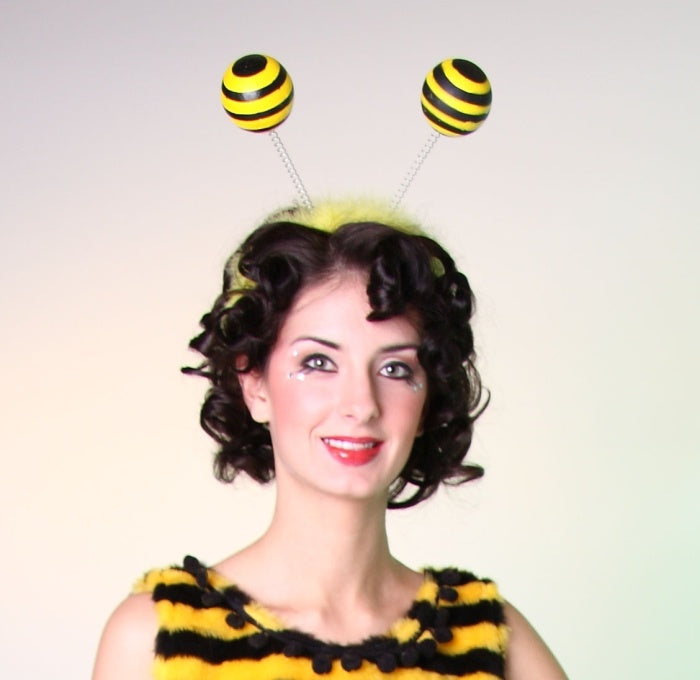 Farbe: schwarz/gelb -Kopfbügel mit Bienenfühlern —Material: Styropor, PP, Draht, Truthahnfedern -Warnhinweis: Karnevalsartikel, kein Kinderspielzeug!