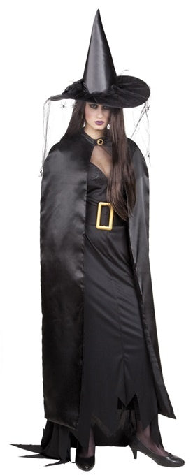 Das Cape wird in schwarz geliefert. Geschlossen wird das Cape mit einem Klettverschluss, dieser ist mit einer goldenen Brosche mit schwarzem Stein verziert.
