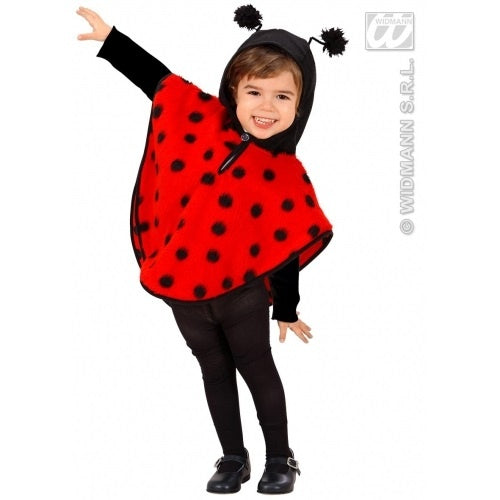 Das Kostüm besteht aus einem Umhang in rot mit schwarzen Punkten und direkt angebrachter Kapuze mit Fühlern. Sehr niedlich…