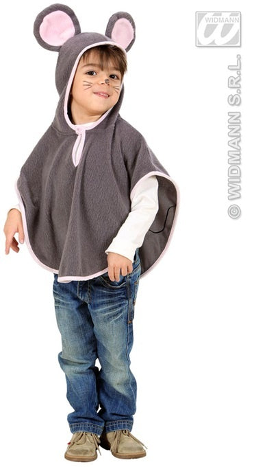 Das Kostüm besteht aus einem Cape mit angebrachter Mütze in Mäuseoptik. Sehr niedlich…