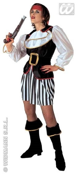 Das Kostüm besteht aus einem schwarzem Kasack (Oberteil) mit weißen Ärmeln mit weißem Volant, einem schwarz/weiß gestreiftem Rock, einem Gürtel mit goldener Schnalle, einem rotem Stirnband und schwarzer Stiefelbedeckung.