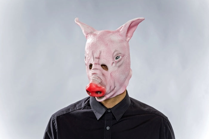 Farbe: rosa -Maske —Material: Latex -Warnhinweis: Von Feuer fernhalten.