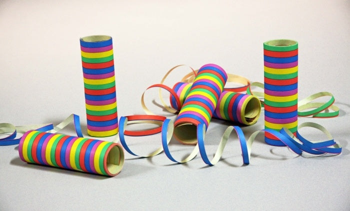 Die Luftschlangenrollen bestehen aus 18 Schlangen in 5 Farben