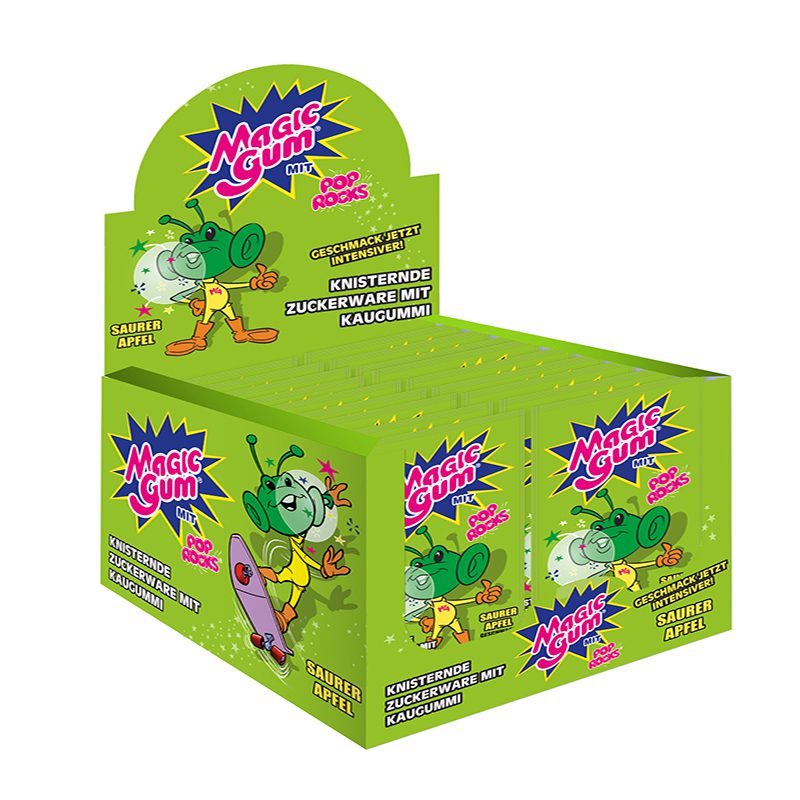 Knistender Kaugummi mit saurer Apfel. Ein wahres Erlebnis für den gesamten Mund.