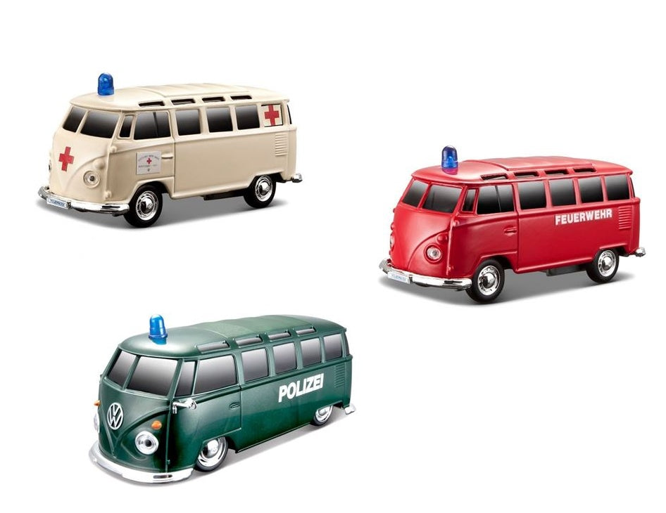 × Maisto Fresh Metal - VW T1 Einsatzfahrzeug, 12 cm 3-fach sortiert, mit licht und Sound