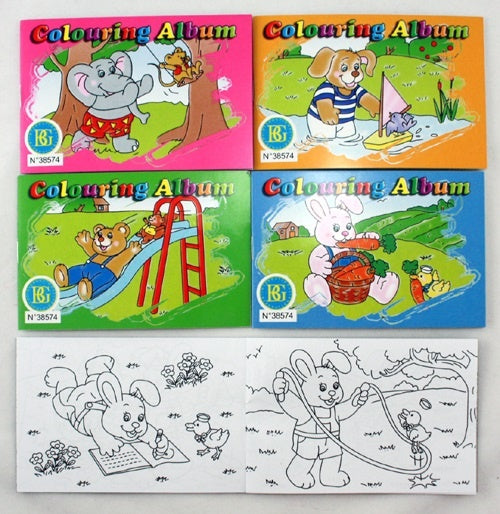 Die Malbücher sind ca 9 x 13 cm groß. Die Bücher werden in 4 Ausführungen geliefert: – Elefant mit Maus, Hase mit Küken, Hund mit Vogel, Bär mit Eichhörnchen – Die Motive der einzelnen Bücher drehen sich jeweils um die beiden Tiere auf dem Deckblatt. Jedes Büchlein hat je 8 Seiten, die doppeltseitig bedruckt sind. D.h. pro Buch sind es 16 verschiedene Motive.