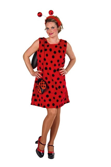 Flieg, Käfer, flieg! Ärmelloses Marienkäfer-Kleid mit angenähten Flügeln und einem Kopfbügel mit Fühlern. Das pfiffige Handtäschchen gehört dazu. -Größe: 40/42 -Farbe: rot/schwarz -Kleid —Material: 64% PC, 19% PP, 17% PES, Tasche —Material: 100% PES –