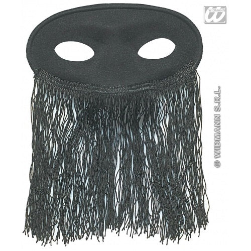 Die Maske wird in schwarz mit schwarzen Fäden geliefert. Sie besteht aus Polyester. Mit Hilfe des Gummibands kann man die Maske am Kopf befestigen.
