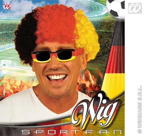 Die Perücke besteht aus Locken in Deutschlandfarben. Sie ist perfekt für Stadienbesuche oder beim Publicviewing geeignet.