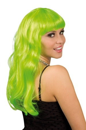Die Perücke ist eine Langhaarfrisur mit Pony und wird in grün geliefert.