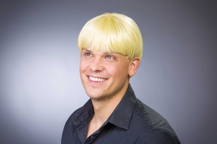 Farbe: blond -Perücke —Material: 96% PET, 4 % PES –
