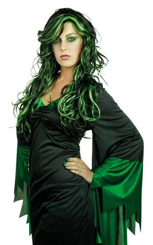 peruecke-sumpfhexe-schwarz-mit-gruenen-straehnen