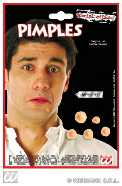 Die Pickel bestehen aus Latex. Sie werden mit dem mitgelieferten Flüssiglatexkleber im Gesicht befestigt. Um eine noch realistischere Wirkung zu erzielen, sollten die Pickel mit Hilfe von Makeup, dem Rest des Gesichts angepasst werden. Auf der Rückseite der Verpackung ist eine Anleitung angeben.