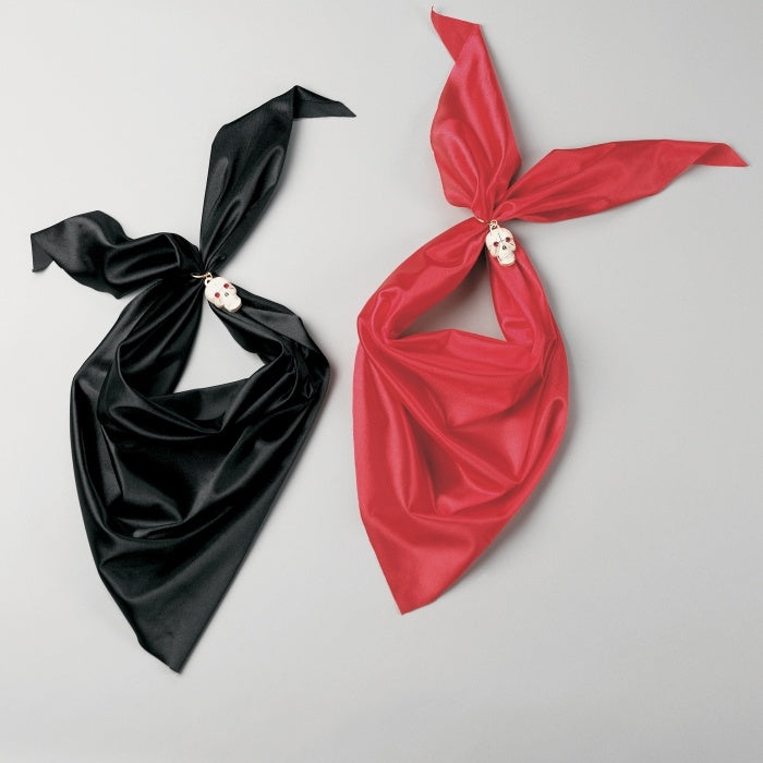 Farbe: rot -Tuch —Material: 100% PES, Totenkopf —Material: PS, Alu –