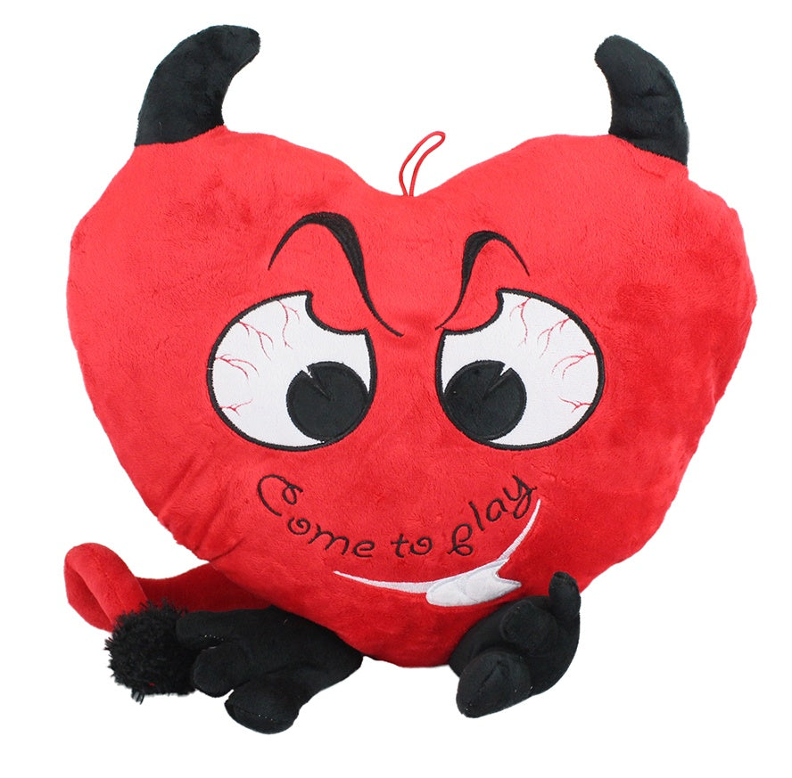Plüsch Herz als Teufelchen m Schrift ‚Come to Play‘ ca 42cm