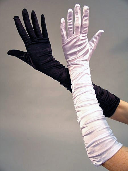 Farbe: schwarz -Satinhandschuhe gerüscht schwarz —Material: 92% PC 8% EL -Warnhinweis: Nicht für Kinder unter 14 Jahren geeignet. Von Feuer fernhalten.
