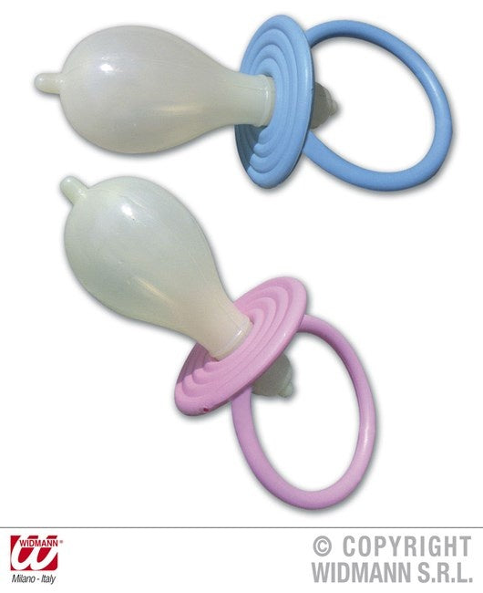 Die Schnuller werden sortiert mit blauem Griff und rosa Griff geliefert. Die Schnuller bestehen aus Kunststoff.