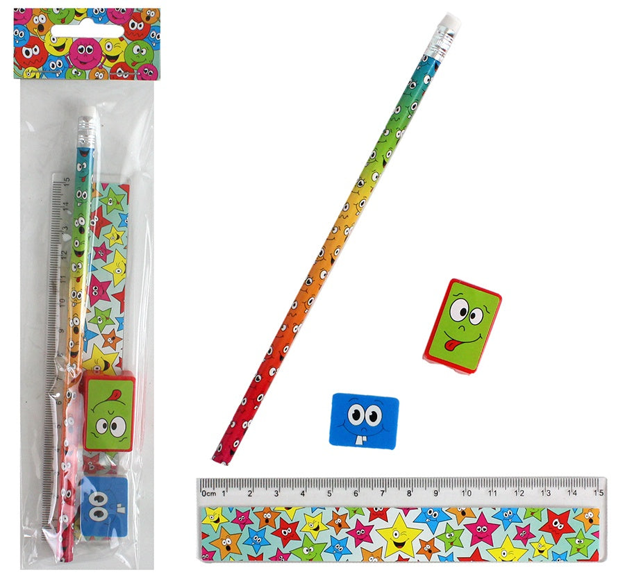 – Schreibset bestehend aus Bleistift, Lineal, Radiergummi und Anspitzer