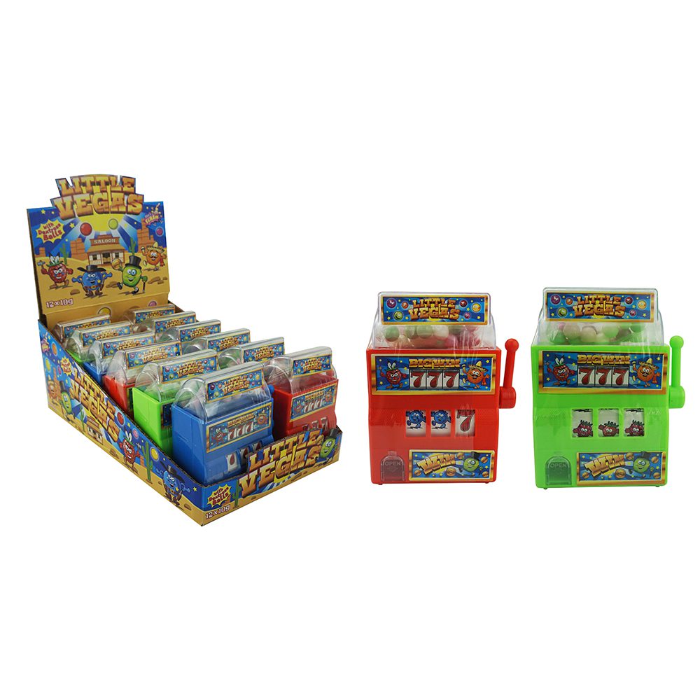 Sweet Flash Little Vegas ist ein Mini Spieluatomat gefüllt mit kleinen süßen Kügelchen. Aber keine Angst. Denn bei diesem einarmigen Banditen gewinnen sie sicher. Ob es für den Jackpot reicht müsssen sie aber selber rausfinden. Der Große Gewinn wartet auf sie.