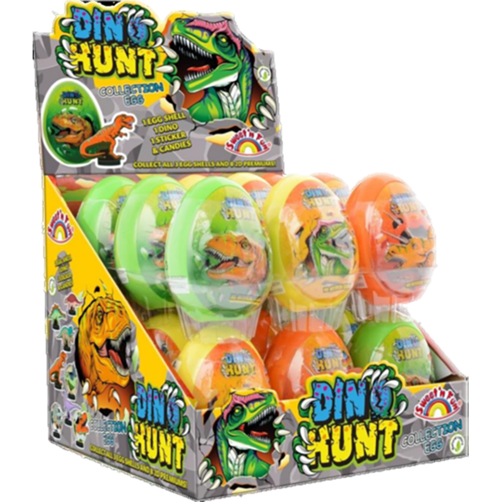 Sweet’n Fun Dino Hunt Collection Egg sind bunte Eier. Dabei befindet sich in jedem Ei ein Dinosaurier, ein Sticker und eine kleine Süßigkeit. So kann man Naschen und Sammeln gleichzeitig. Dabei gibt es drei verschiedene Eierschalen und acht verschiedenene Saurier zum Sammeln. Ob T-Rex oder Triceratops. Denn hier kommt jedert Dinofan auf seine Kosten. Sammel sie alle.