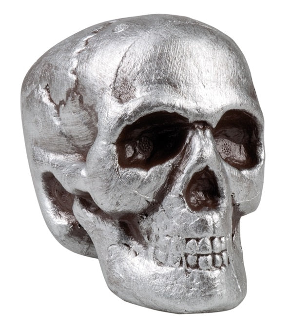 Der Totenkopf besteht aus Styropor. Er wird in silber geliefert.