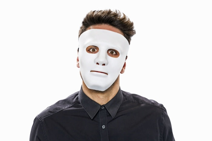 Farbe: weiß -weiße Maske, männlich —Material: PP -Warnhinweis: Ausstattungsteil für Erwachsene, kein Kinderspielzeug.