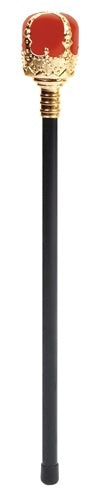 Das Zepter besteht aus einem schwarzem Stab mit gold/rotem Aufsatz im Kronendesign. Der Artikel besteht aus Kunststoff.